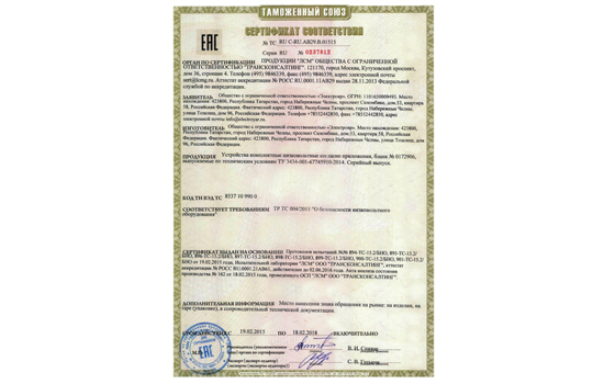 Получен сертификат соответствия требованиям технического регламента Таможенного союза «О безопасности низковольтного оборудования».